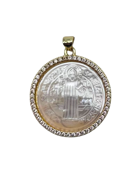 St. Benedict Medal Mother of Pearl Pendant – Silver & Gold
