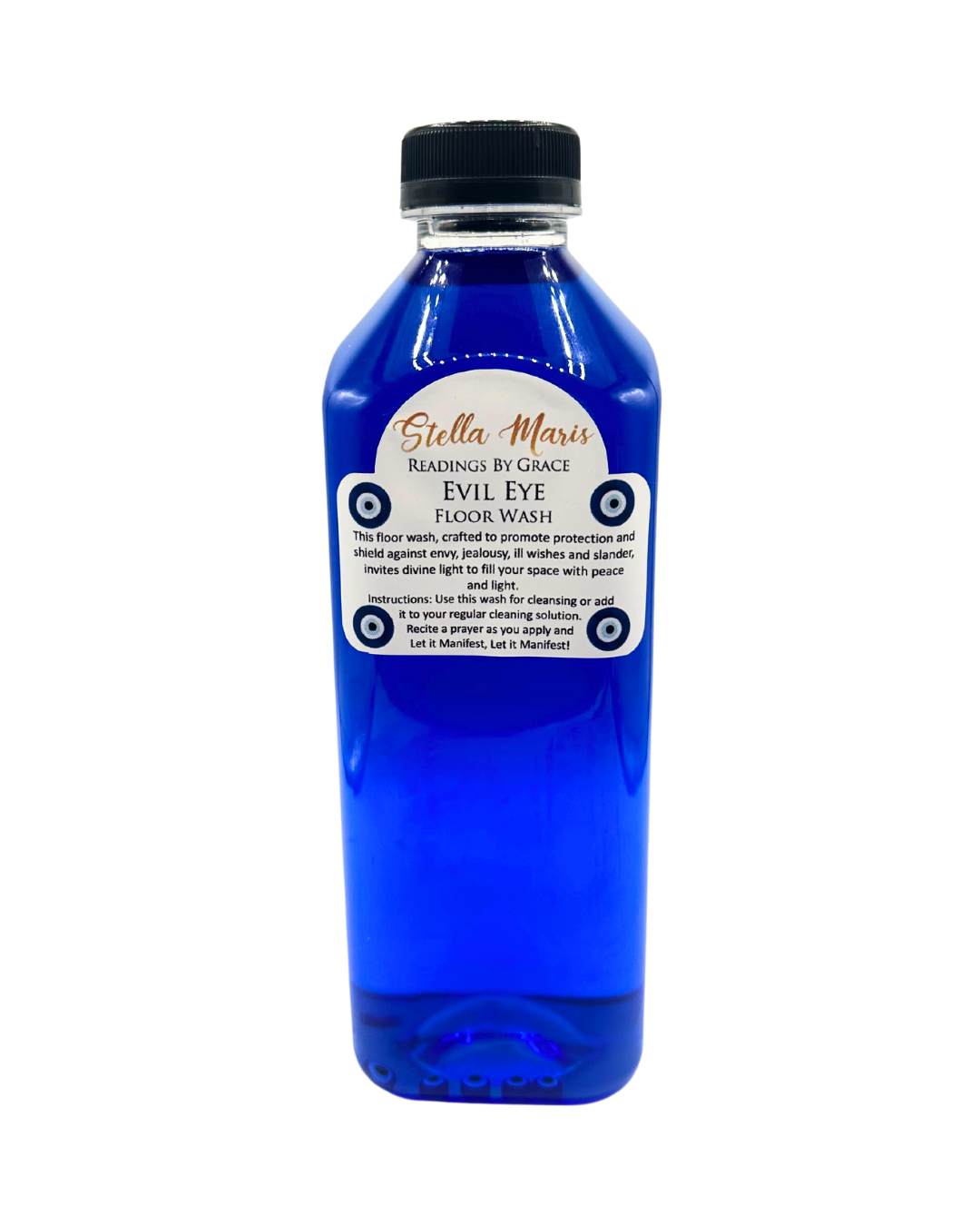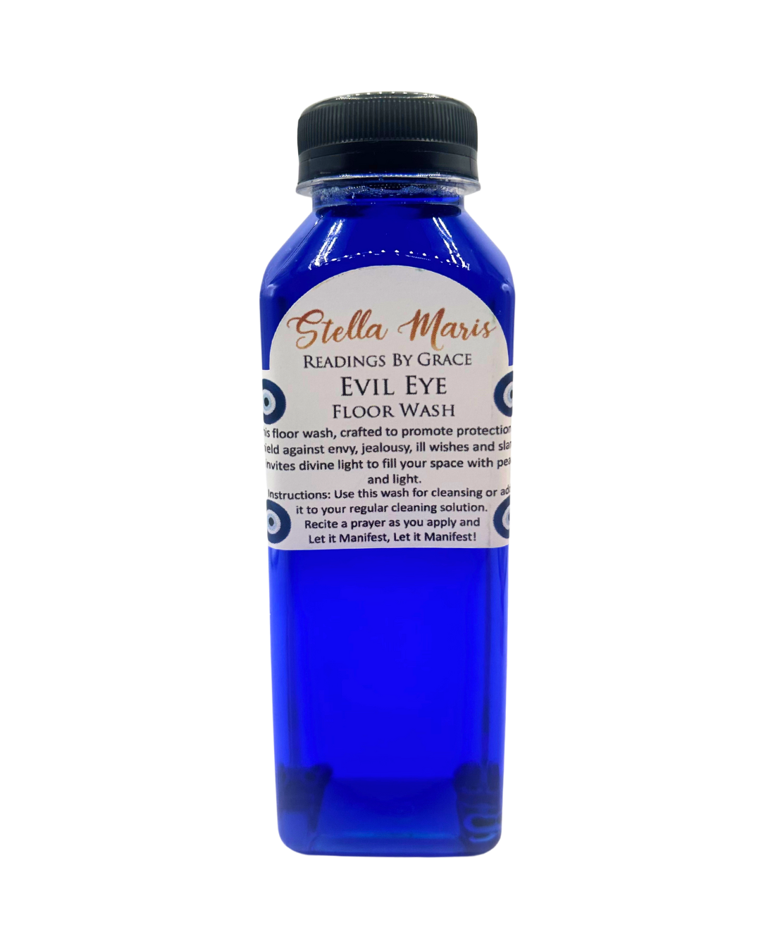 Introducing the Evil Eye Floor Wash, a carefully crafted blend designed to shield your home from the malevolent energies of the evil eye, gossip, negativity, and other harmful influences. Specially formulated for use on floors and surfaces, this potent solution creates a protective barrier, warding off negativity and promoting harmony and positivity within your living space.