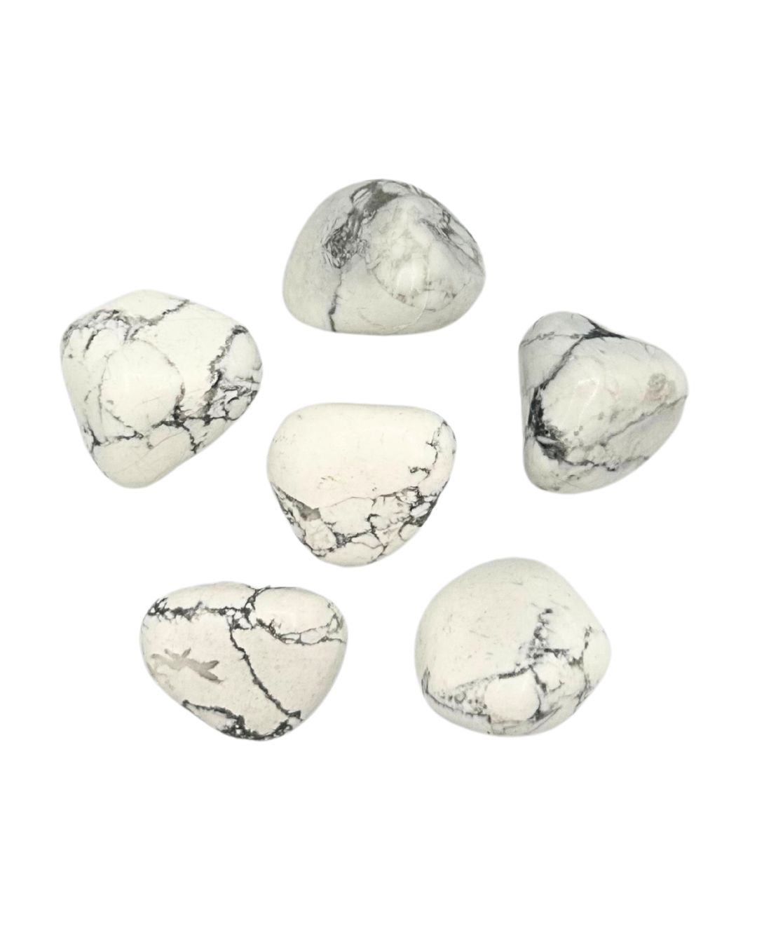 Our Howlite tumbles are small yet powerful crystals that hold the key to unlocking inner peace and spiritual growth. Each tumble is a testament to the beauty and tranquility found within nature's embrace and are perfect companions for your pocket, purse, or sacred space. As you hold them in your hand, you'll feel a sense of calm wash over you, grounding you in the present moment and easing the stresses of daily life.