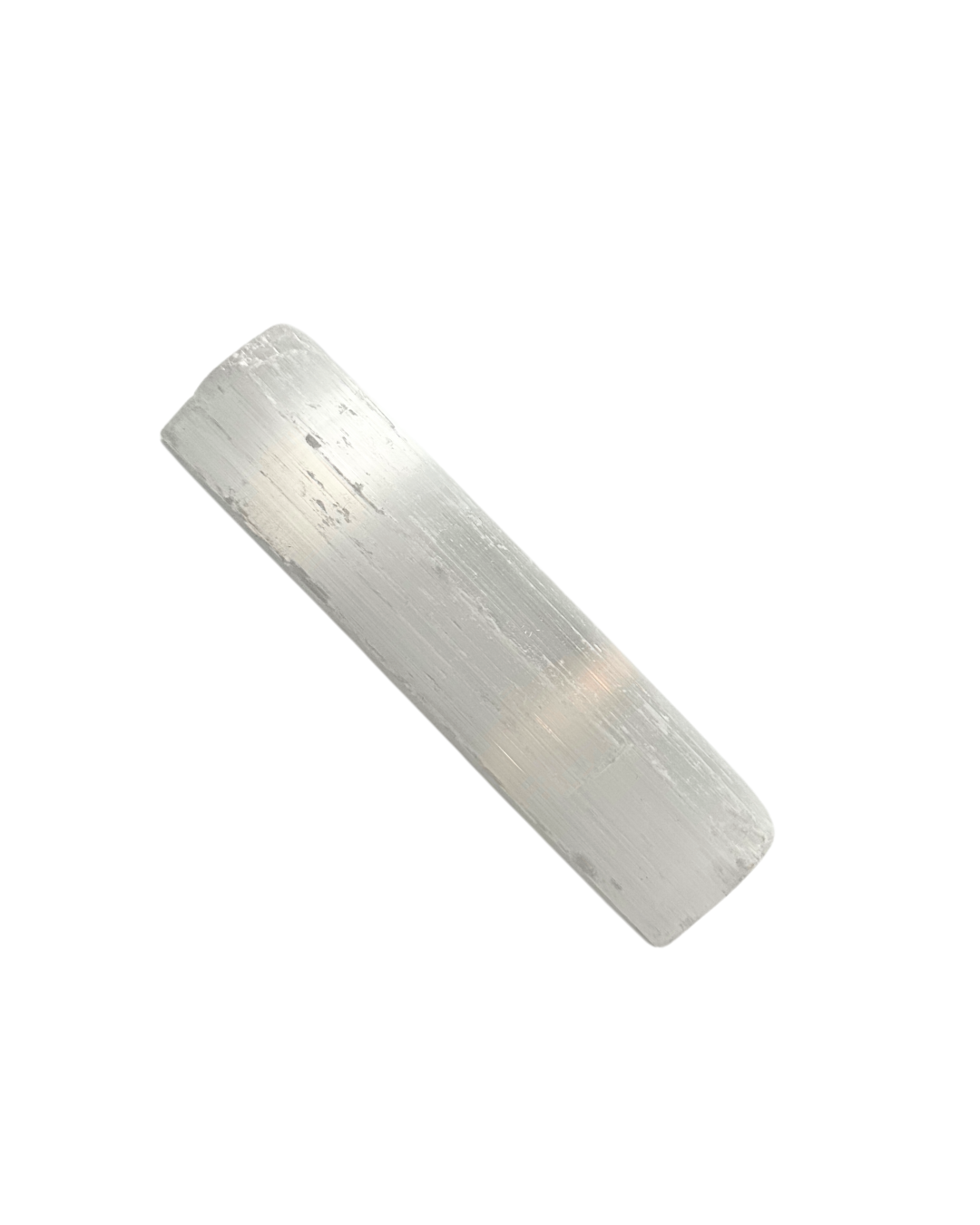 The Mini Selenite Stick, measuring 4 inches, is a powerful and versatile tool valued for its purifying and cleansing properties. Selenite, a crystallized form of gypsum, is revered for its ability to clear negative energies and promote clarity of mind. Its pure white appearance symbolizes purity and light, making it ideal for spiritual rituals aimed at cleansing and rejuvenation.