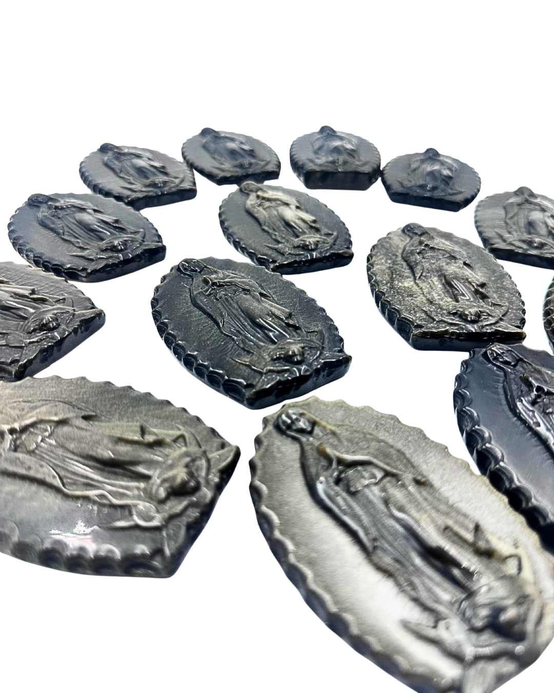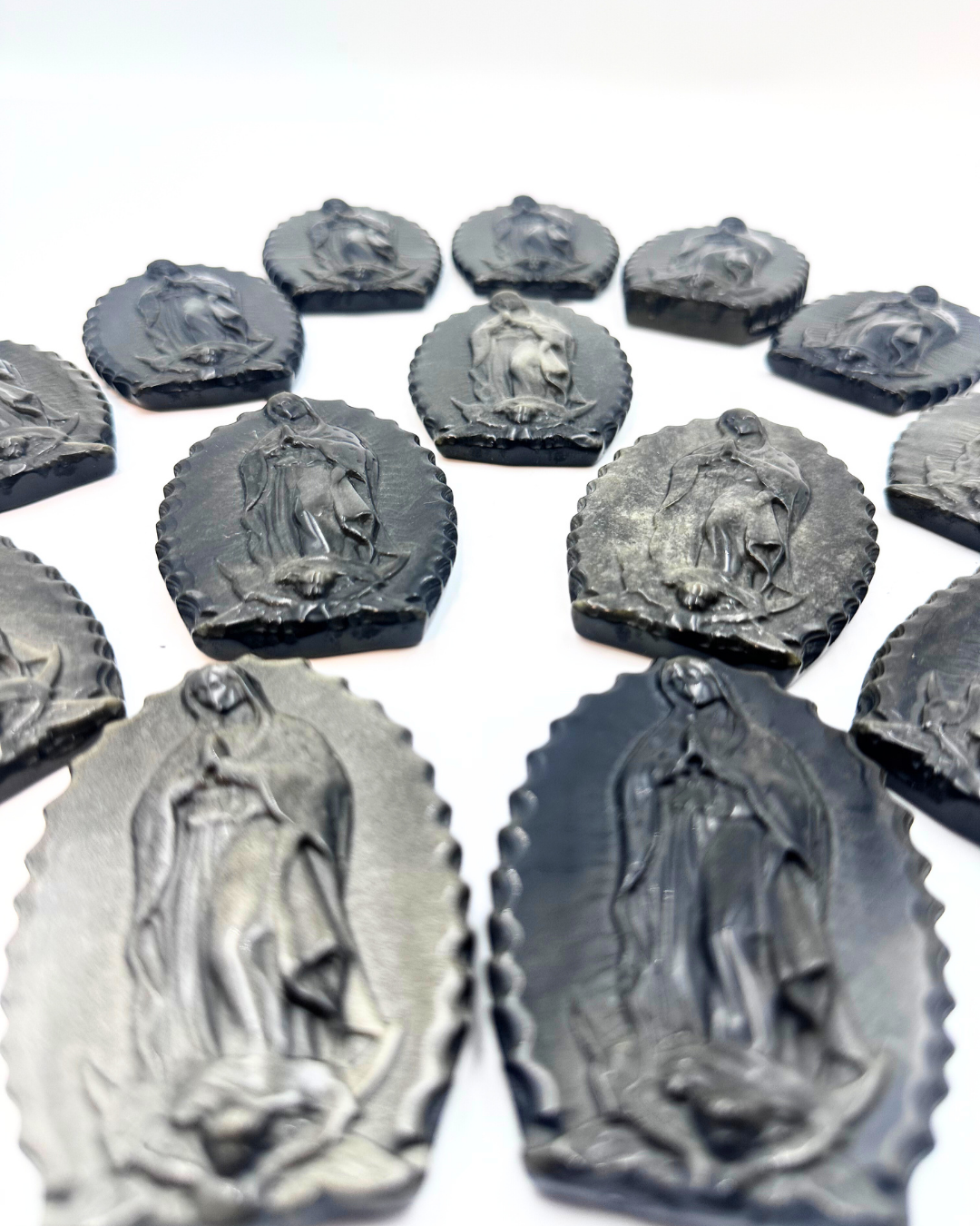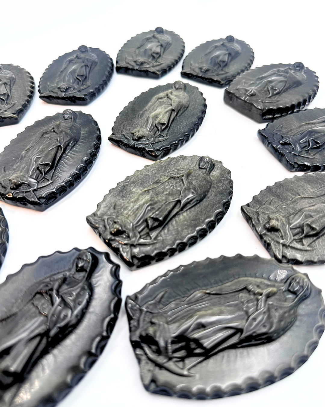 Hand-carved from protective black obsidian, these sacred depictions of Our Lady of Guadalupe carry both spiritual power and deep reverence. Known as the beloved Patroness of the Americas, Our Lady of Guadalupe is honored as a symbol of faith, compassion, and divine protection. Combined with the grounding and shielding energy of obsidian, these carvings serve as powerful talismans of devotion and spiritual strength.