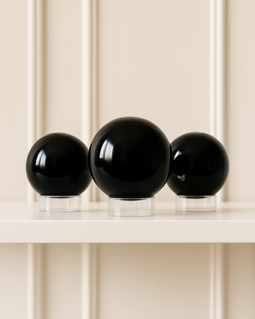 Placed in your home, sacred space, or office, obsidian creates a protective shield that absorbs dense energies and restores balance. Holding or meditating with a sphere promotes grounding, focus, and spiritual cleansing, while its perfect shape allows energy to radiate evenly in all directions. Both striking in beauty and powerful in energy, these spheres are timeless pieces to support spiritual practice and elegant décor.