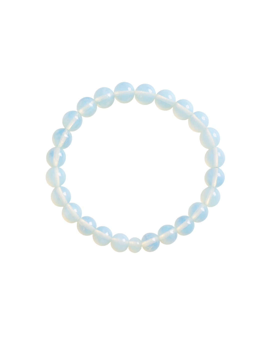 Glowing with a soft, iridescent light, the opalite bracelet carries a gentle energy of hope, renewal, and transformation. Though man-made, opalite is cherished for its uplifting vibration that helps clear the mind, ease transitions, and invite a sense of calm clarity. Worn on the wrist, it supports emotional balance, enhances intuition, and encourages open communication from the heart. Its luminous, moonlit glow makes it not only a powerful spiritual ally but also a stunning accessory that adds a touch of elegance to any style.