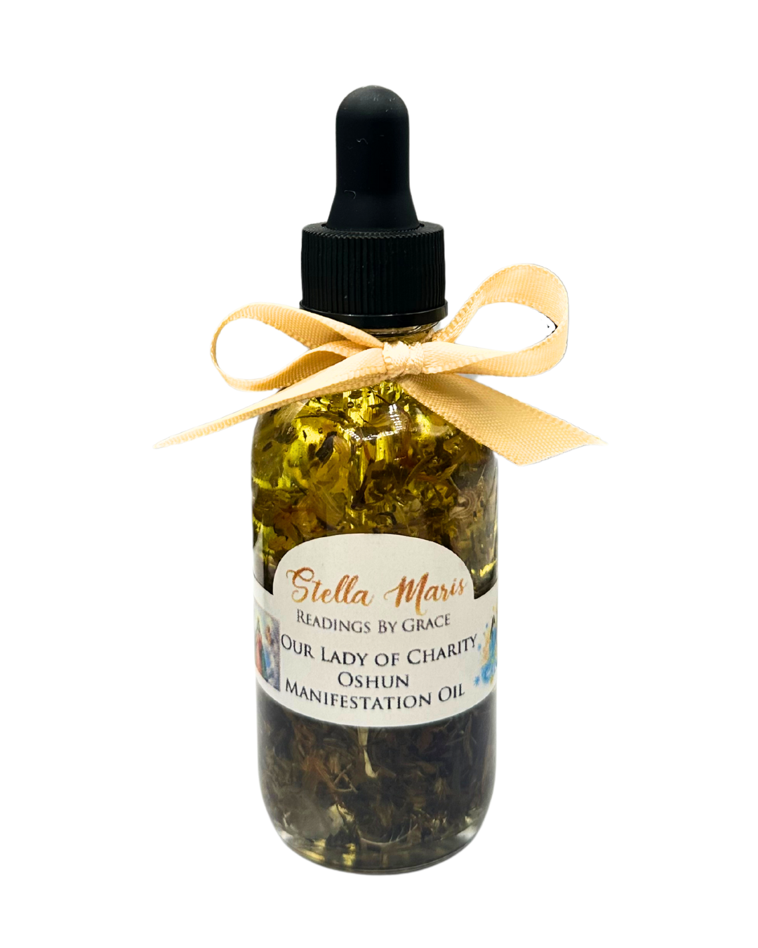 Manifiesta tus deseos con un poderoso aceite de manifestación infundido con una mezcla de hierbas y aceites, aprovechando las propiedades espirituales y vibratorias para invocar a Nuestra Señora de la Caridad/Oshun. Este aceite único se basa en el carisma y el encanto para atraer diversas oportunidades, beneficiando particularmente a aquellos en los negocios que luchan por el éxito. El aceite de Nuestra Señora de la Caridad/Oshun se convierte en un aliado para materializar tu viaje hacia tu yo más elevado y más grande.