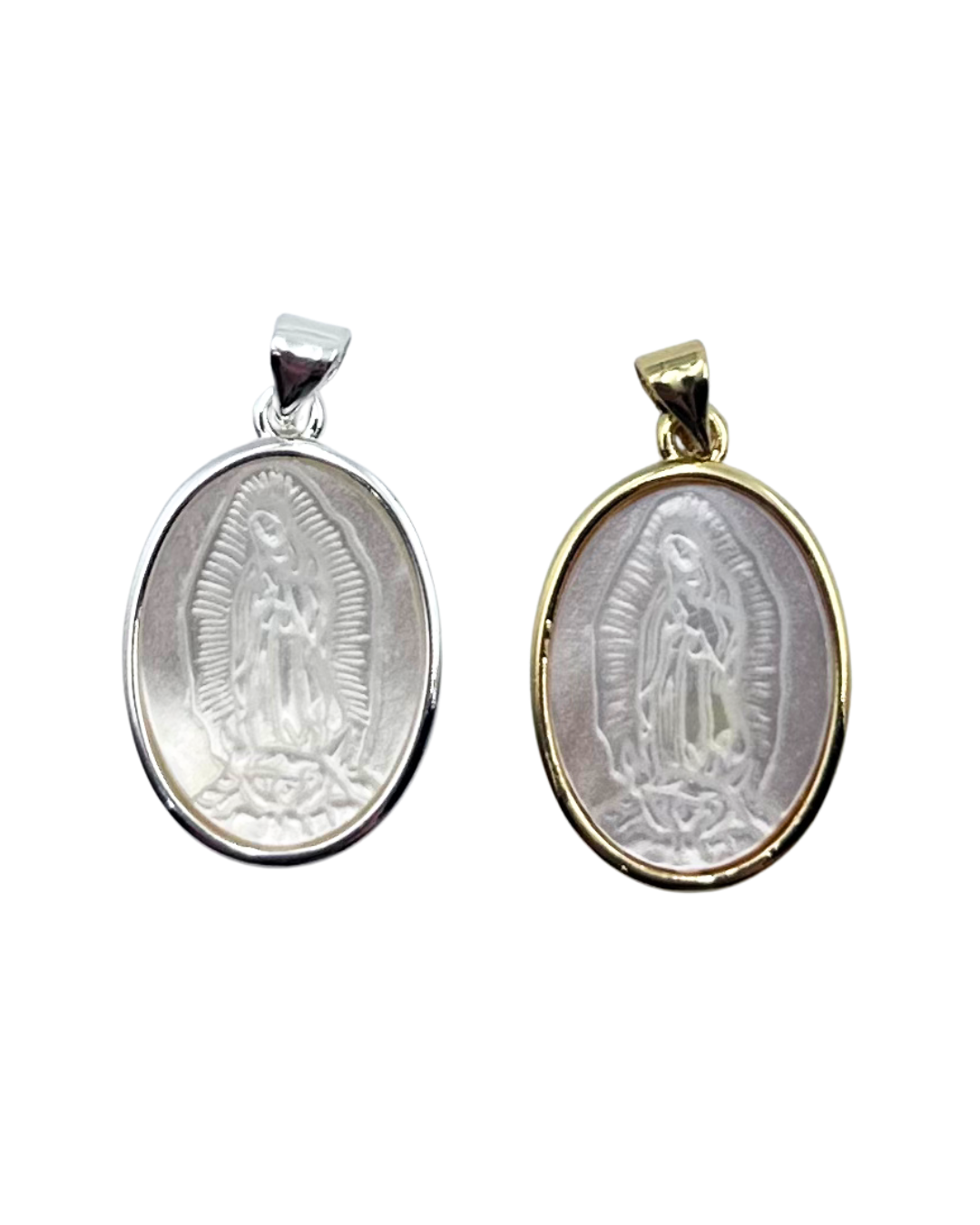Carry the comforting presence of Our Lady of Guadalupe close to your heart with this beautifully crafted pendant, available in both silver and gold finishes. Set against a luminous mother of pearl base, the detailed engraving honors the beloved Patroness of the Americas, a symbol of faith, protection, and divine love. Worn as a devotional piece, it serves as a reminder of guidance, hope, and spiritual strength in daily life.