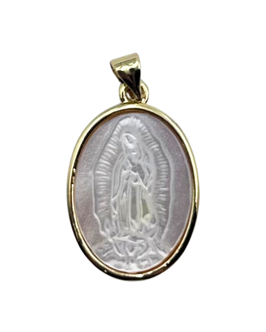 Our Lady of Guadalupe Mother of Pearl Pendant - Silver & Gold