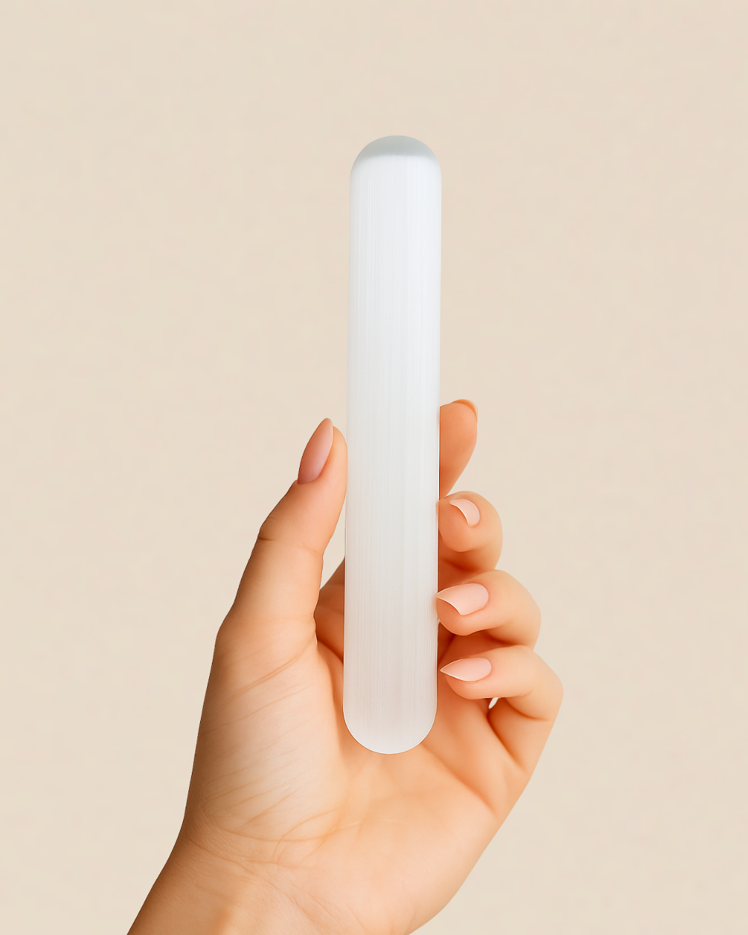 Each wand is carved from genuine selenite, showcasing its luminous white glow and natural striations, with every piece uniquely beautiful.