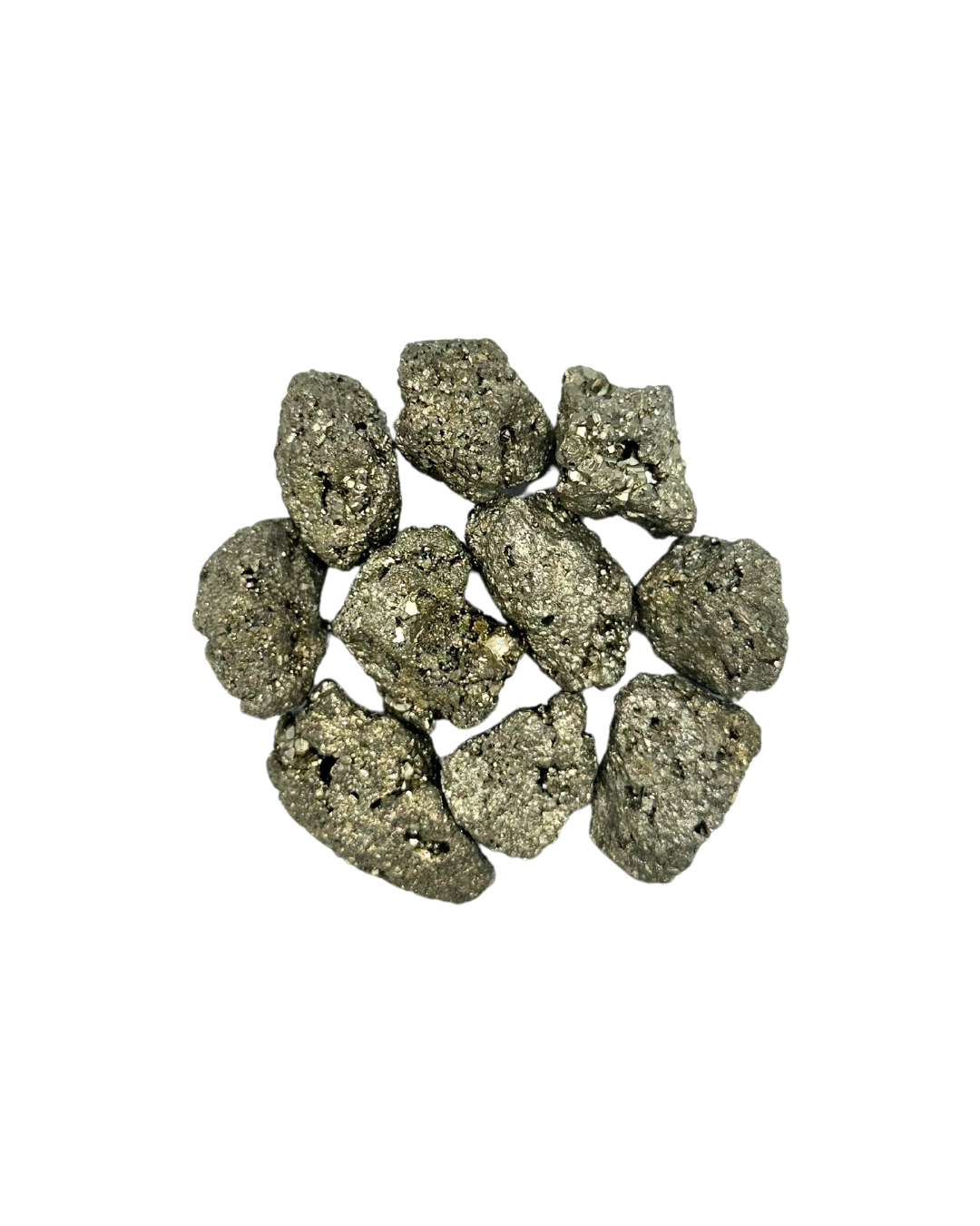 Las piedras de pirita son apreciadas por sus cualidades protectoras contra la negatividad y las energías malévolas. Reconocida por promover el bienestar integral (espiritual, mental, emocional y físico), la pirita sirve como catalizador para estimular el segundo y tercer chakra, infundiendo fuerza y coraje. Más allá de la protección, la pirita fomenta el bienestar general, energizando sus reinos espiritual, mental y emocional mientras promueve la vitalidad física.