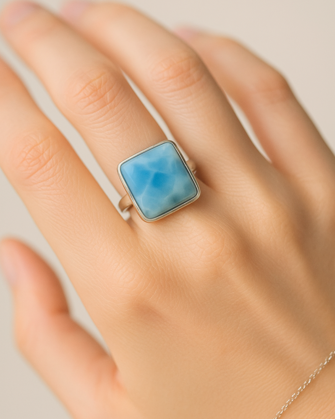 Square Cut Larimar Ring – Size 8