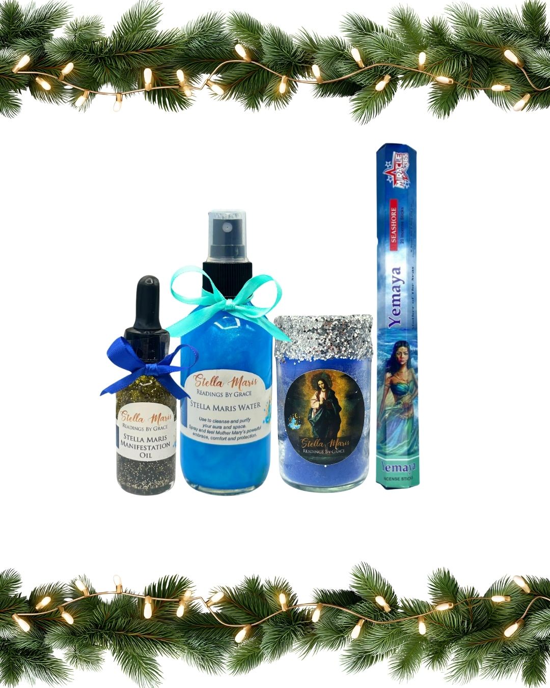 Illuminate your path with love, light, and fulfillment using the Stella Maris / Yemaya Bundle, meticulously crafted to manifest your desires with the gentle energies of Mother Mary and Yemaya.